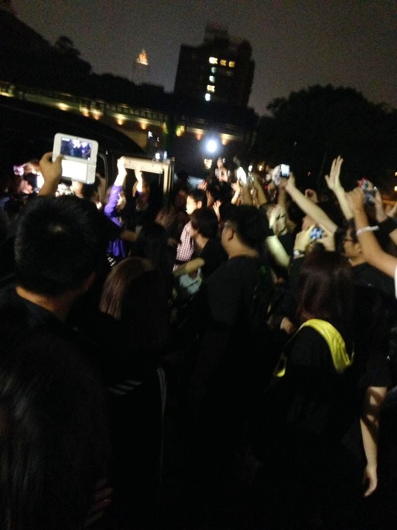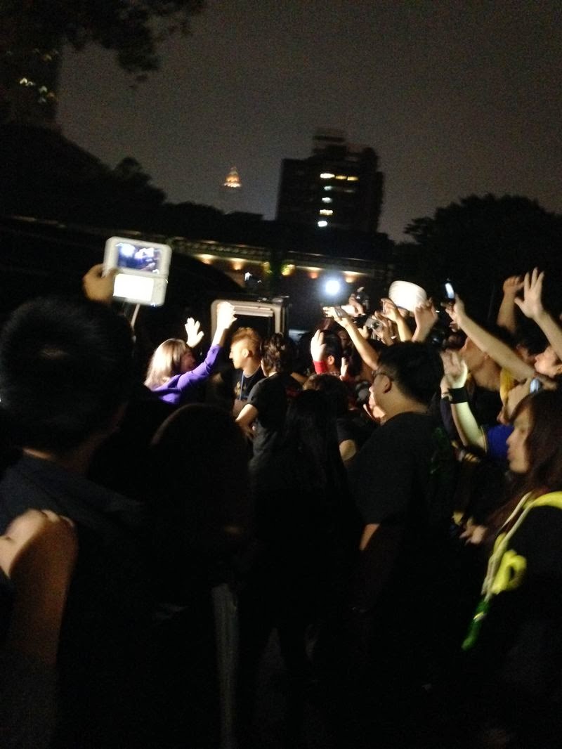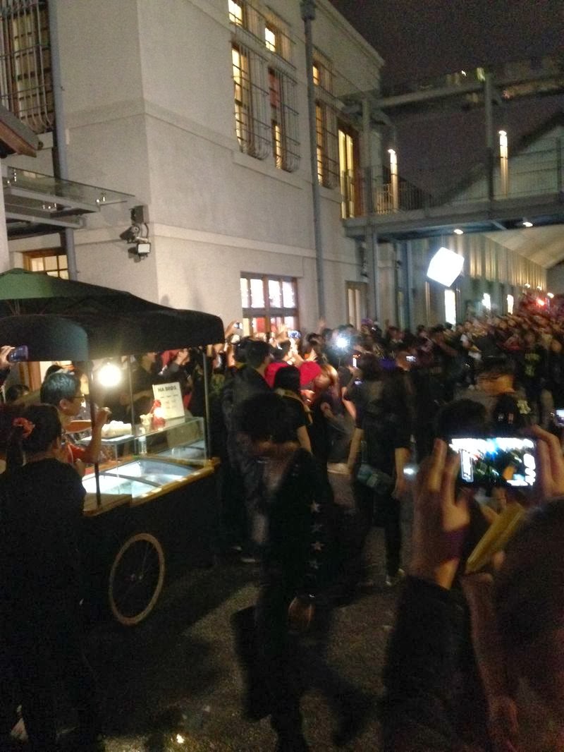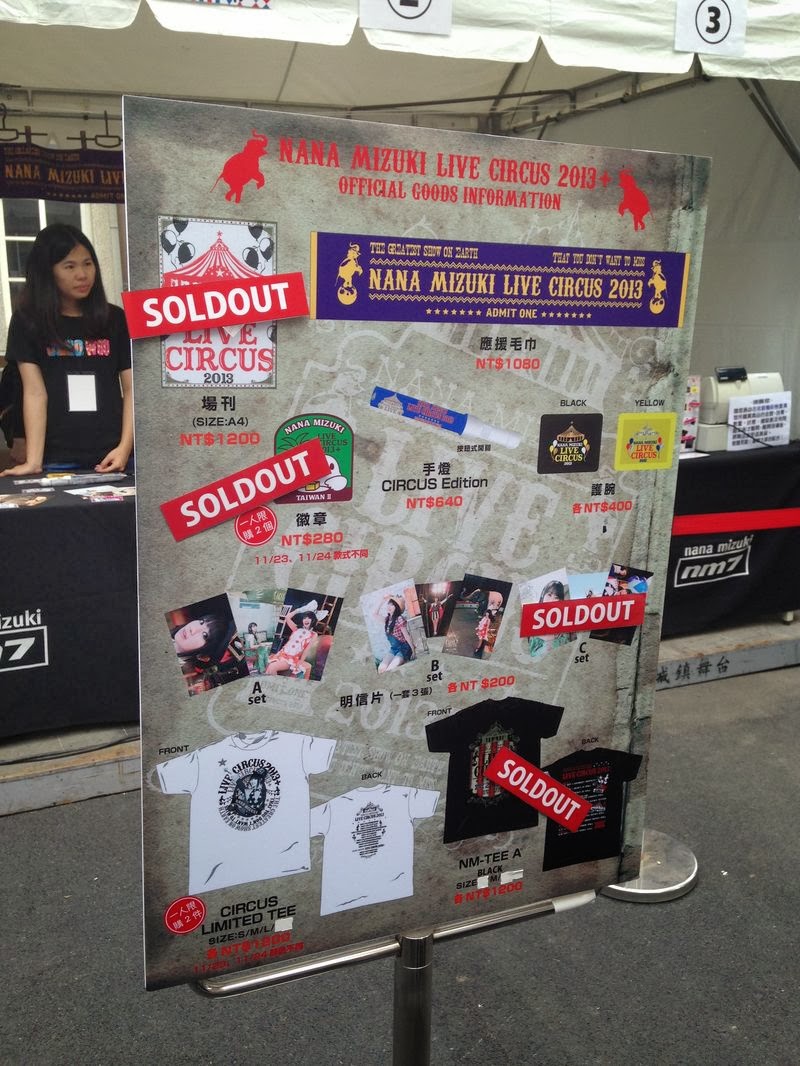 ![]() 圖片來源,官方FB粉絲團 這裡就直接跳過場地、購票等一堆不太愉快的事情,直接從11/22(五)開始吧∼ 11/22(五) 接機時間到11/20公布,這之前還想說可能不打算讓Fans接機,所以才遲遲沒有消息。不過,接機地點在松山機場,對我來說算是挺方便的,搭捷運去不用一小時就可以到了。 我大概是在19:40左右抵達,JL099班機預定抵達時間是21:00,所以覺得20:00前到應該就可以了。到之前,從FB上的現場回報狀況,估計來接機的人應該不會少於300人。到了現場,發現已經來了約150~200左右,主要的通道和好景點都有人先佔了。 最重要的是,沒過多久,班機抵達時間就變為提前到20:20了。從20:00之後,人潮陸續湧現,最大的一團就是接機團,他們的位置在前往出口的通道上,有安排一些接機的事宜要送給奈奈。不過,我看不到就是了。因為我的位置在入境出口的正面偏右的地方,等奈奈往出口移動時,根本無法穿過好幾層的人牆,看到通道上的狀況。 雖然奈奈一行人應該在20:30左右就入境了,不過他們似乎在等行李和討論接機的事情,所以到20:50才正式來到大廳。 此行,除了要目睹奈奈本人之外,最希望的就是能夠目睹三嶋P、矢吹和cherry boys。從迷上奈奈開始,三嶋P、矢吹和cherry boys就成為奈奈身邊不可或缺的關鍵人物。不過,三嶋P這位大製作人真的很低調,明明入境時就是走在奈奈後面,結果一下子就閃到旁邊的工作人員中了。讓我當時以為三嶋P沒有跟著過來,後來從影片中才看到三嶋P一閃即逝的身影,真的太低調了。而且當奈奈走過通道時,三嶋P就跟在攝影師的後面,一點也不打算讓自己入鏡的樣子。 在機場看到的奈奈不太多,因為前面的巨人多,而且手上的武器又大,被擋來擋去,當奈奈走過通道到機場外時,也沒辦法跟過去,光是數層厚的人牆就放棄了。但也正因為奈奈吸引走了大多數的Fans,所以入境出口頓時空了出來,讓我有幸一睹矢吹和cherry boys,拍到了幾張照片。 都沒人跟我搶,超讚的!被攝影機檔到的那位是鼓手阿部薫(アベサマ)。 由左至右是吉他手北島健二(ケニー)、鍵盤大平勉(トム君)、音樂兼演唱會製作人矢吹俊郎(トシちゃん)、吉他手渡辺格(イタルビッチ) 和貝斯手兼MC阪本竜太(りゅーたん)。 イタルビッチ在跟我(?)揮手,讚啦! 帶來的樂器器材超多。 再補充個沒有照片的花絮。當奈奈離開後,就到機場外和朋友碰頭,發現cherry boys他們還在裝載行李,還沒有離開,最神奇的是居然沒有人圍在他們旁邊。所以我就大膽地走到黑色廂型車旁邊看他們裝載行李,不過沒有拍照就是了,怕打擾到他們。 11/23(六) 這天早上九點半出發去會場排物販。因為預計排物販的人應該約1000∼1500左右,比起今年初的GRACE OPUSII那種動不動就五、六千的排隊潮,應該會輕鬆很多,況且我沒有要收徽章,因此打算輕鬆點。 到了會場,人潮確實沒有好幾千人,我排的位置約在300左右,300這個數字是工作人員報的,不過我自己一路走過來,估計應該到400了。開始排的時間是11:10。當天上午天氣很熱,太陽很大,和昨天的陰冷完全不一樣,傳說果然是真的。 我排的位置剛好被夾在兩團日本人中間,我還以為衝來台灣的日本人會很拼的清晨就來排。在排的時候,剛好就出現了一個路邊攤來賣周邊,有一堆手燈和顯然是沒有經過授權的各種印有肖像的商品。真的是不知道該怎麼說才好,他們做生意都沒有想過這場LIVE不只會有日本人來看,還會有日本的媒體記者來拍,甚至還有NHK的全程影像紀錄耶∼實在是... 今天的物販是13:00開賣,所以在開賣前就站了快兩小時。開賣後發現前進速度實在很慢,原因是服務窗口只有開三個,旁邊另一棚並沒有開張,事實上第二天也沒有打開,那一棚不會是只當倉庫在用吧? 在排隊時,剛好遇到NHK的攝影師來採訪我前面的兩個女孩子,因為她們其中一人有穿台灣非官方的奈T,所以就被相中了。訪問的內容蠻簡單的,都是常見的提問,就不多說了,到時候在MJ上撥出時就知道了。應該會被剪進去吧∼ 我買完物販大概是15:30左右,跟我在GRACE OPUSII排的時間差不多,真是離譜的慢。同樣的,物販第一個售光的就是徽章和T恤的XL號。幸好我買L號也OK。 在會場展出的同人圖大看板。 物販收穫。手燈、場刊和明信片是必收的,特別是場刊,這個是最超值的寫真書。而手燈則是值得留念的紀念品,不管有沒有王劍,手燈都是要買的。 因為有幫朋友買物販,所以總共有12張NANA CARD。不知道為什麼,開第一包的時候就有預感會是閃卡,結果真的中了。 因為幫朋友買,所以朋友就讓我可以先挑整套,多出來的四張就給朋友了。 卡包沒有特別做成CIRCUS+的版本。 閃卡和普卡的背面。 明信片ABC。 官方手燈,手上沒有王劍的推薦買一隻比較好。不然,在入場前,PPT奈板也有在免費發放UO,反正就是不要空手進去,不然會感覺很孤單。 背面的說明都換成中文的。 場刊。 場刊果然是物超所值的好東西。 黑T的袋子,因為黑T已經拿去洗了XD,之後有空再補圖吧∼ 雖然對這次的台灣主辦方頗有怨言,但為了台灣版限定海報,還是支持,收了一張THE MUSEUM,這張台版應該會保持原樣,不打算拆封。因為我日版的早就收齊了,台版的留作紀念吧。至於其他的台版也不會先收,等明年再來開LIVE時,再來收。 賣CD/DVD的地方在會場門口,在哪裡就能清楚聽到排演的聲音。 台灣版的海報有印上2014的年曆。 雖然沒有11/23的票,我也沒打算向黃牛低頭,所以我