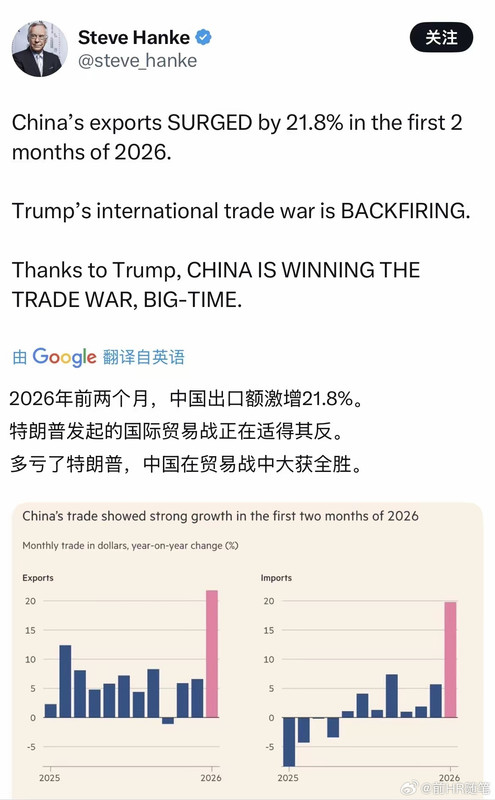 中國今年前2月出口大爆單 2026年1至2月,中國出口6565.8億美元,同比增長21.8%,進口4429.6億美元,同比增長19.8%,均大幅超出市場預期,貿易順差達2136.2億美元。 ![]() 感謝川普!讚美川普! ![]() 有創紀錄的3930萬桶受制裁原油停在中國沿海的油輪上 庫存包括來自伊朗的3020萬桶、來自委內瑞拉的560萬桶和來自俄羅斯的350萬桶。 這比10月份增長了454%,比伊朗戰爭前的水平增長了17%。 約77%的原油來自伊朗,但由于持續不斷的戰爭,新的報價有所下降。 此外,約66%的油輪停泊在黃海,其余停泊在南中國海,這表明大部分油輪都停在中國主要煉油中心附近。 一位中國航運人士告訴媒體,伊朗的原油和天然氣已可以運到東大,但是中國的倉儲已滿!這太凡爾賽了 ![]() ![]() |