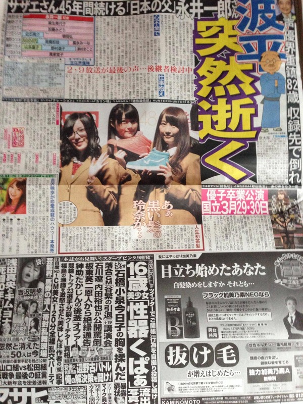昨晚晃了一下相關討論,小珠移籍本部跟指原回歸本部似乎很多人都在談 另外,NMB48 Team M 2/25開始巡演,2/24大組閣祭,好幾個TM成員都直接在G+上表示不滿了 HKT48也才剛宣布成員調動、成立Team K IV(組閣) 所以,等著看戲就好 ![]()