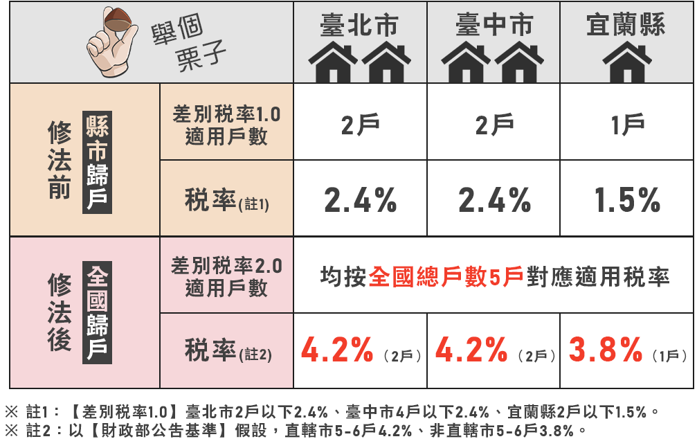 如果2戶自住房屋都有設籍,則今年稅額不變 若都沒設籍 稅率將從1.2%暴增為3.2% 房屋稅從每戶1萬2000元增至3萬2000元 https://www.mof.gov.tw/house/getCKE...960640e21a79d65 2戶2.8% 3~4戶3.8% 5~6戶4.2% 7戶以上.每戶4.8% 這下地方財政.又可以大撈一票 今年地方政府 又要超收幾百億了 ![]() |