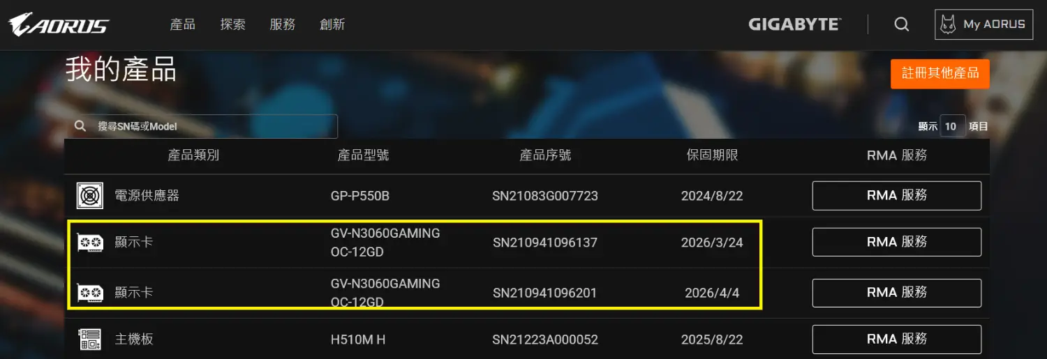 2021年在欣亞電腦購買的,有兩片(一片保固到2026/3/24,一片保固到2026/4/4),品項算新,因升級技嘉5060 Ti故出售。